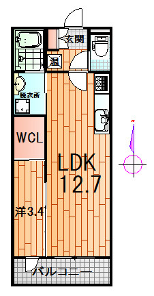 LDK 12.7帖/洋室 3.4帖 - 向き