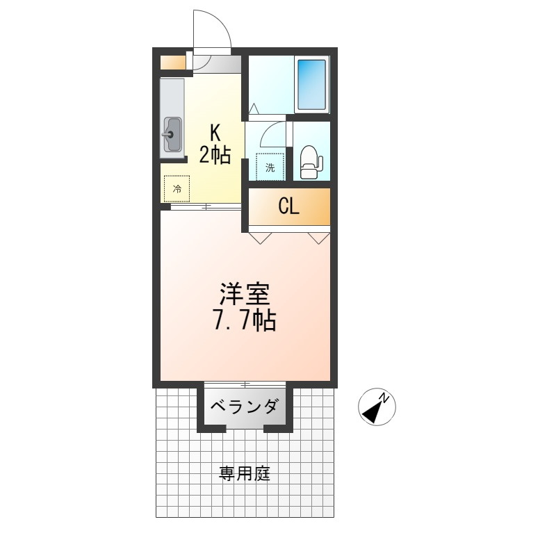洋室 7.7帖/K 2.0帖 - 向き